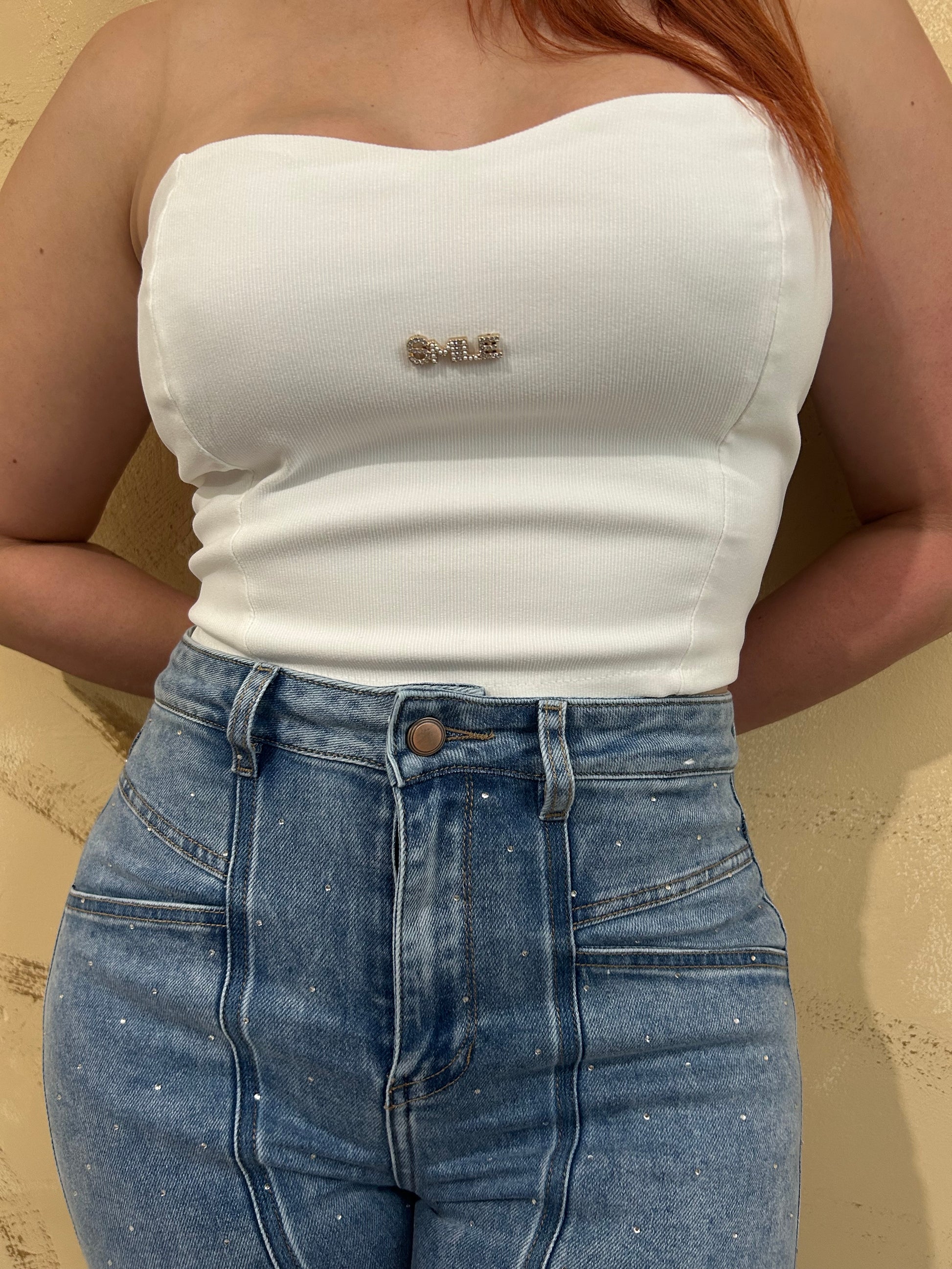 Top tubo con detalle brillante SMILE, cómodo y chic. 💎